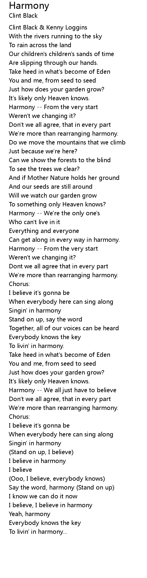 I believe, I believe in harmony |