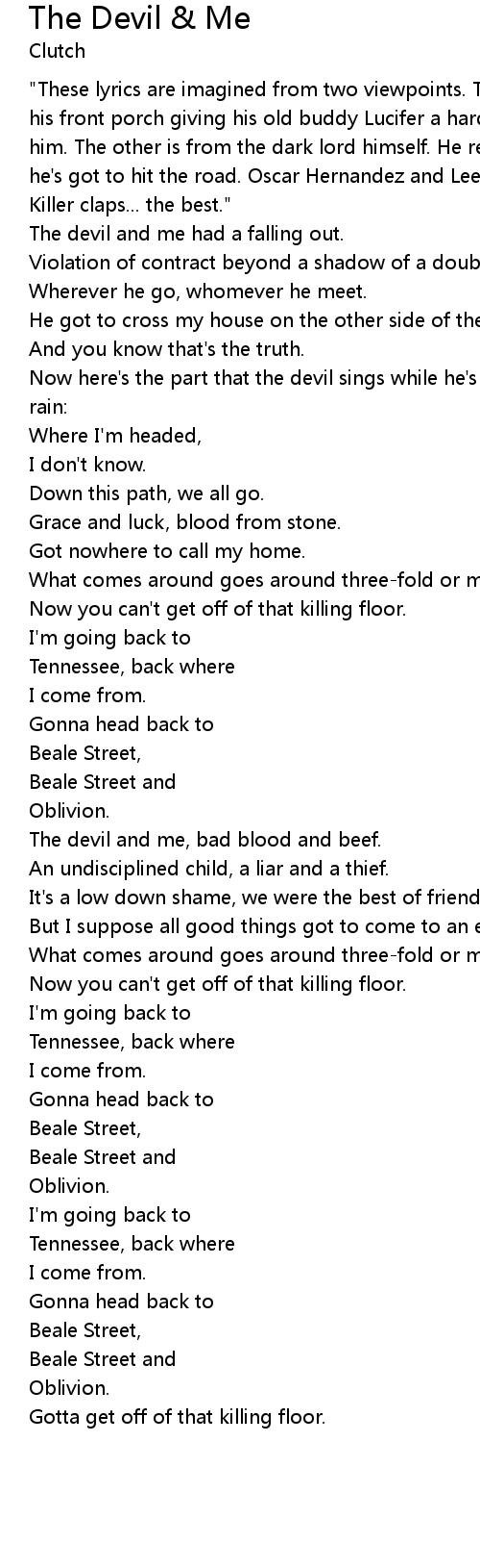 Now here's the part that the devil sings while he's hanging his head in a hard rain: |