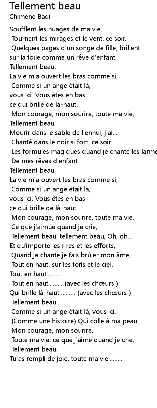 | 歌曲 | Tellement beau |