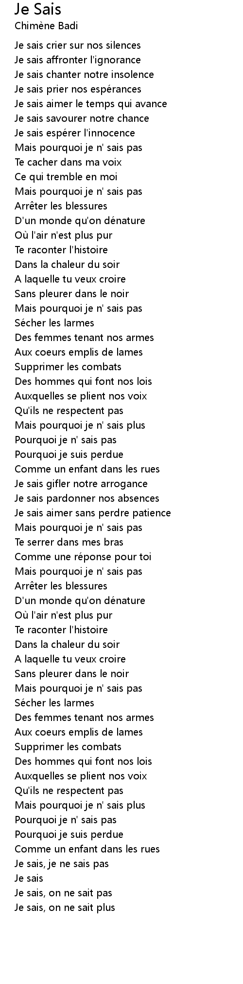 | Je sais | |