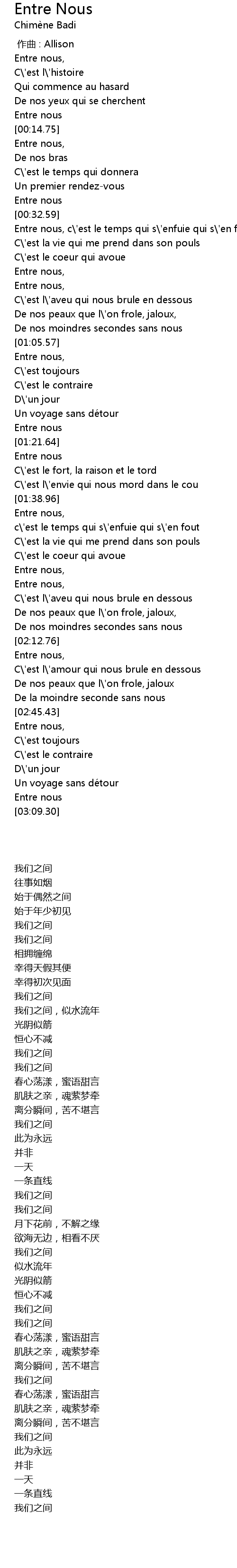 | [00:51.84] | C' est l' aveu qui nous brule en dessous |