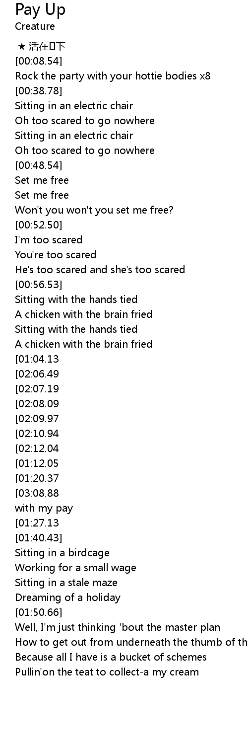 | [02:44.72][01:27.13] | Pay up! |