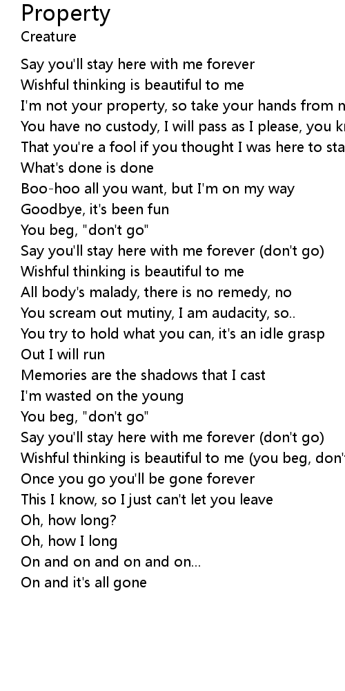 I'm not your property, so take your hands from me, go
