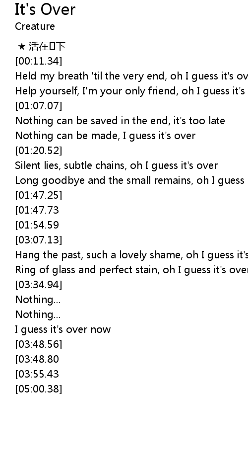 | [00:40.90] | Held my breath ' til the very end, oh I guess it' s over |
