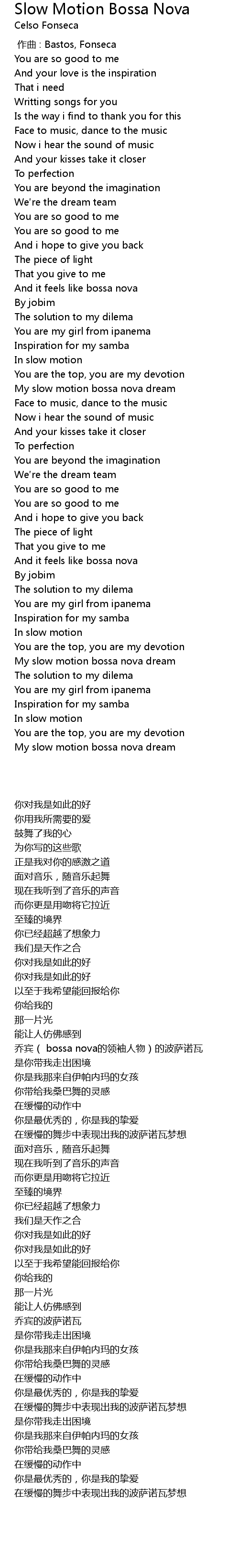 | [03:42.578] | 在缓慢的舞步中表现出我的波萨诺瓦梦想 |