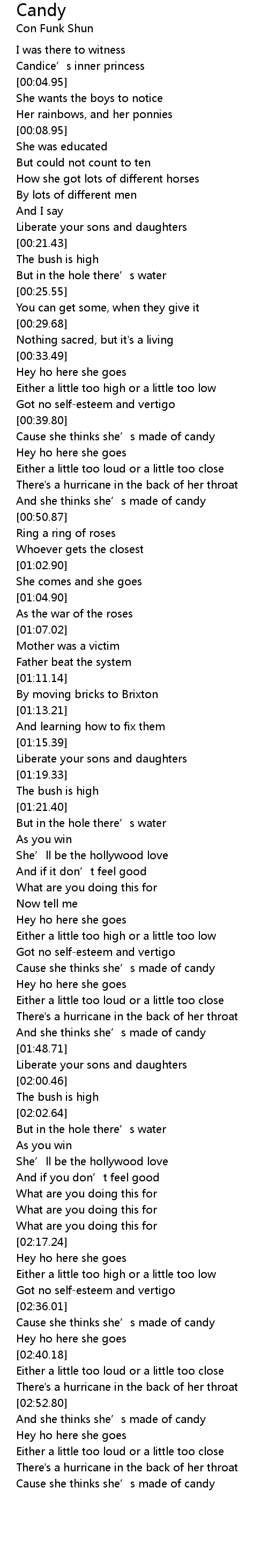 | [03:01.37] | Cause she thinks she’s made of candy |