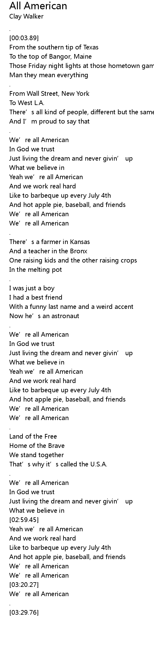 | [02:13.83] | And hot apple pie, baseball, and friends |