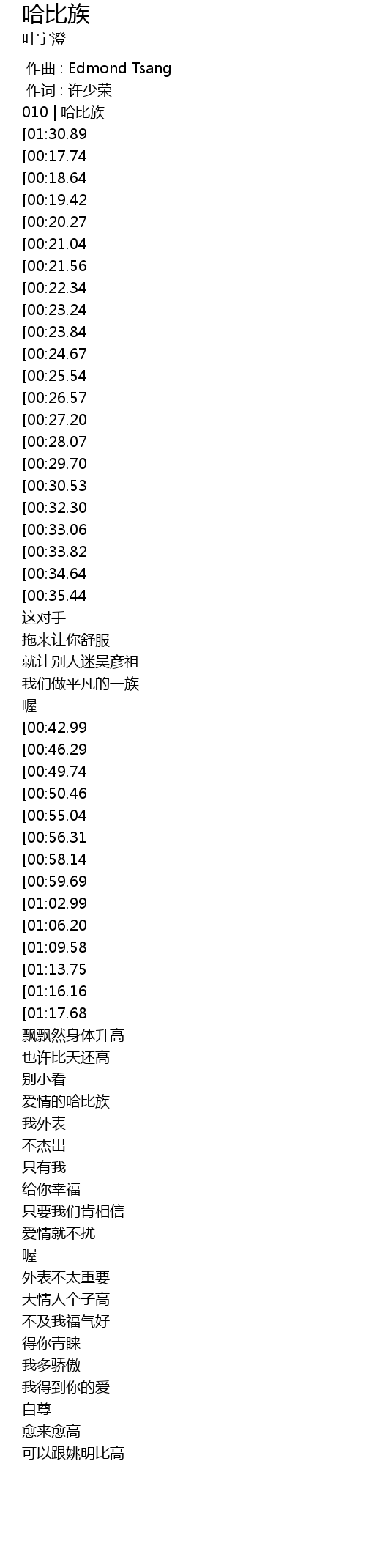 | [00:00.00] | 010 | 哈比族 |