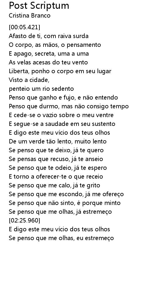 | [02:43.357] | Se penso que me olhas, eu estremeço |