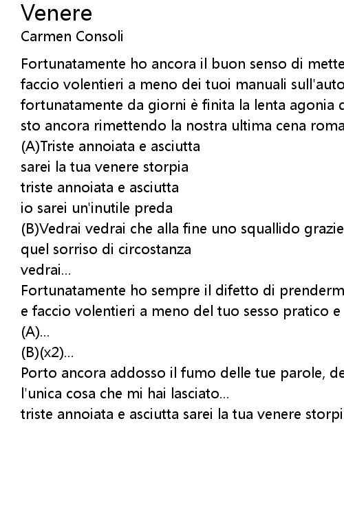 | triste annoiata e asciutta sarei la tua venere storpia(x5) |