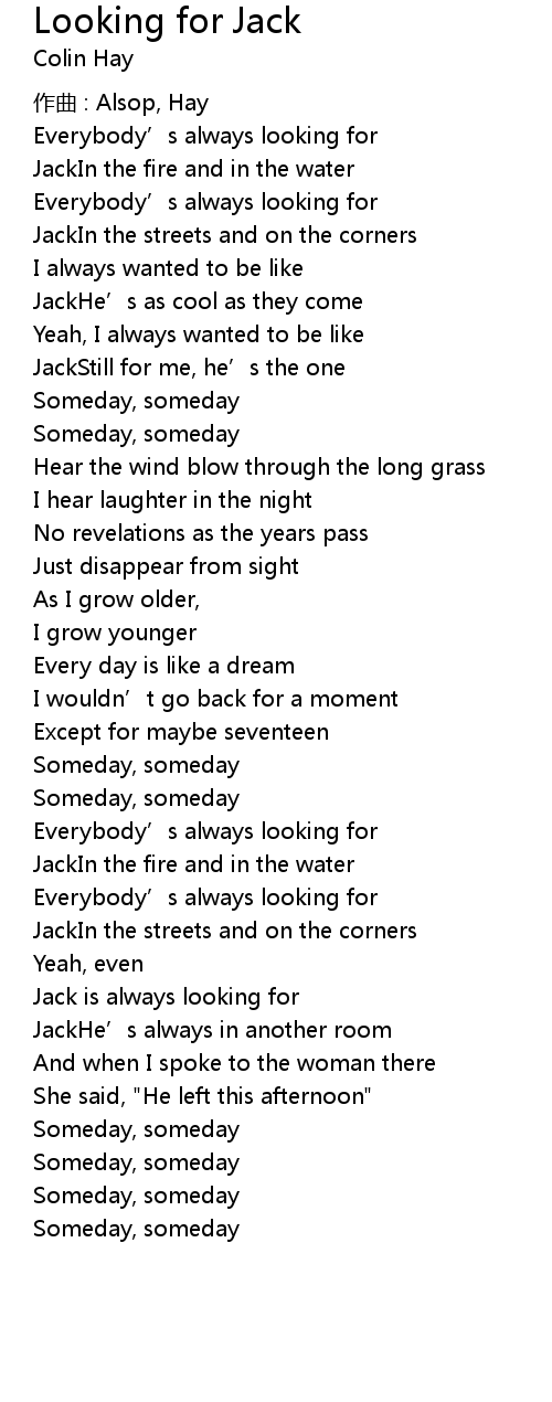 | 歌曲 | Looking for Jack |