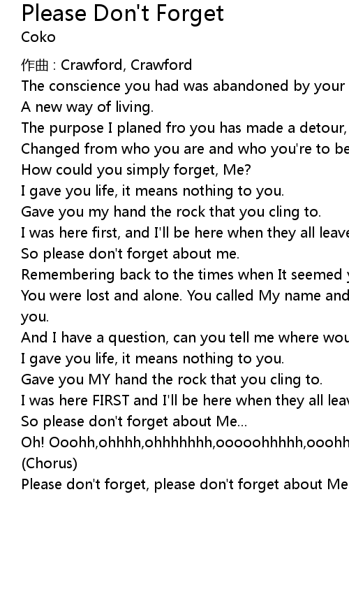 | Please don' t forget, please don' t forget about Me... |