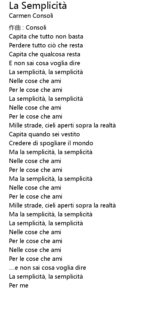 | 歌曲 | La Semplicità |