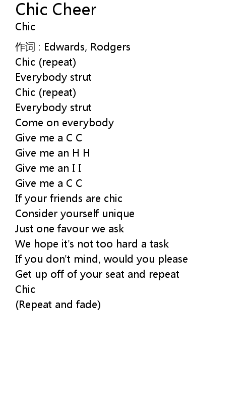 | 歌曲 | Chic Cheer |