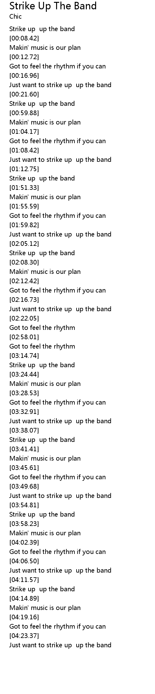 Just want to strike up up the band |