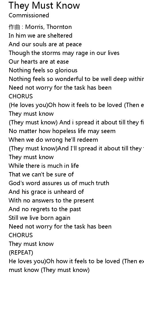 | 歌曲 | They Must Know |