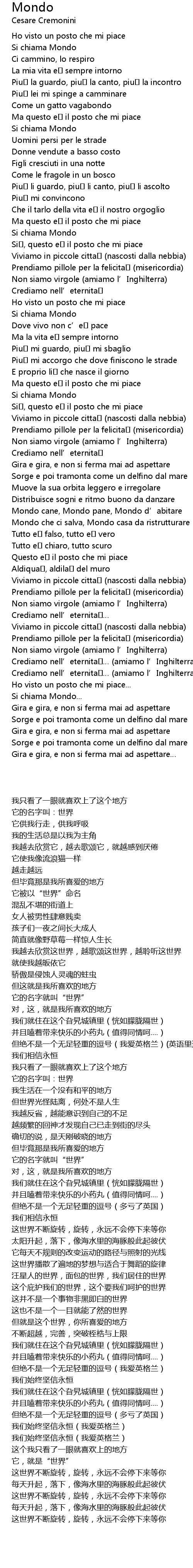 | [03:00.731] | Mondo cane, Mondo pane, Mondo d' abitare |