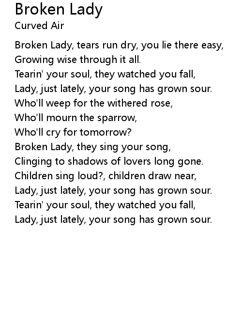 | Broken Lady, they sing your song, | |