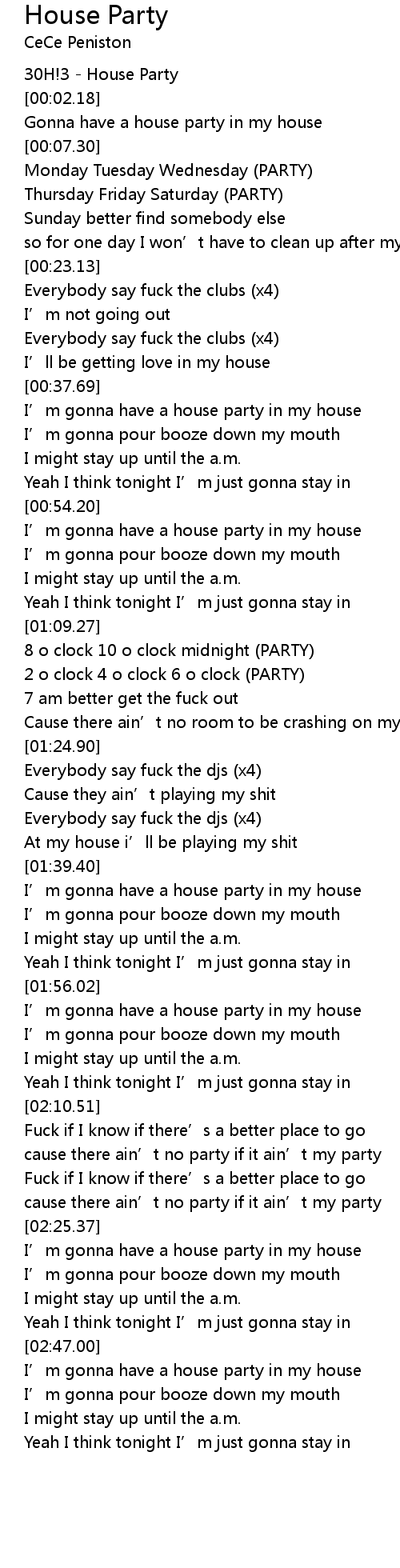 | [00:54.70] | I' m gonna have a house party in my house |