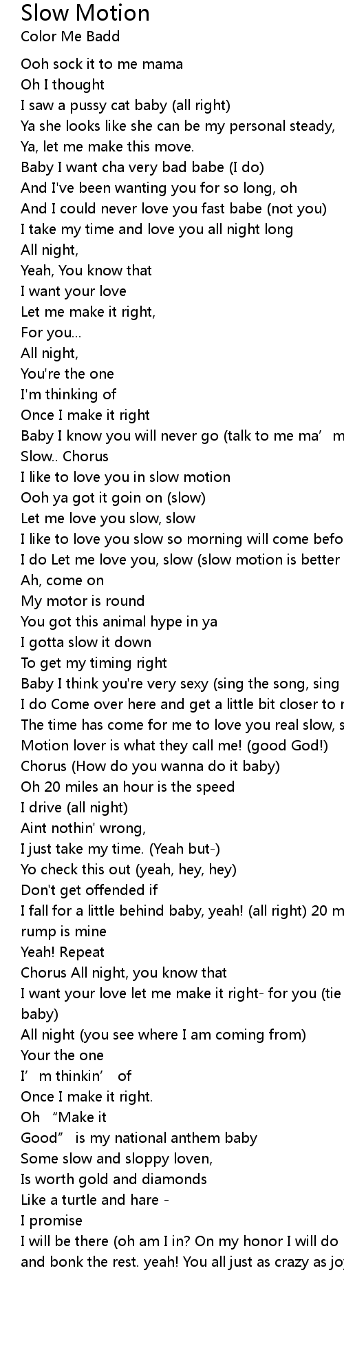 | I do Let me love you, slow slow motion is better then no motion, baby | |