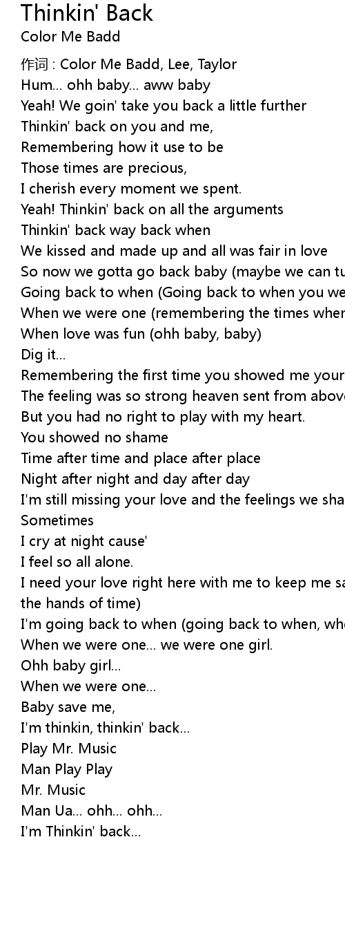 | 歌曲 | Thinkin' Back |
