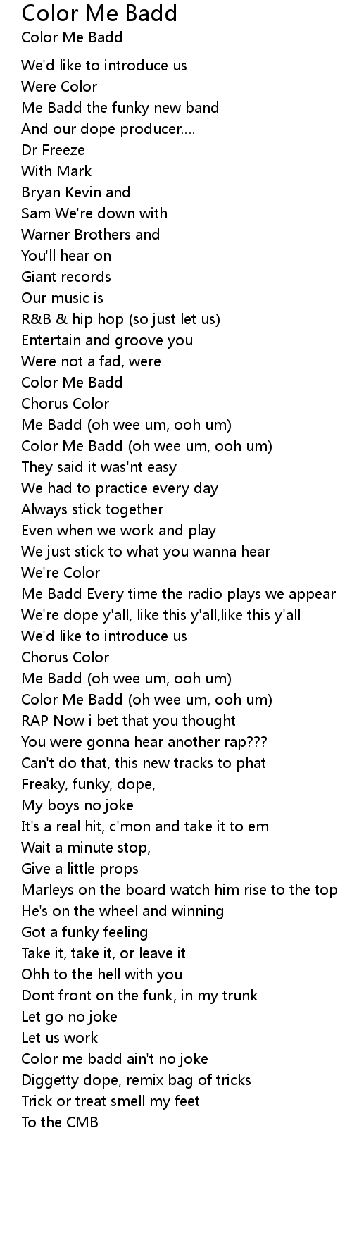 | Color Me Badd (oh wee um, ooh um) | |