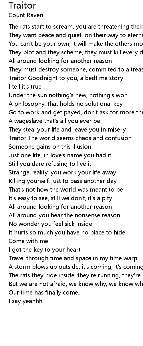 Traitor The world seems chaos and confusion |
