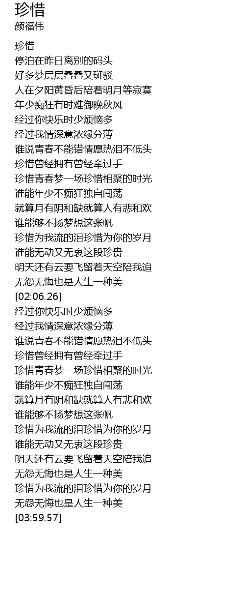 [03:43.27] 珍惜为我流的泪珍惜为你的岁月