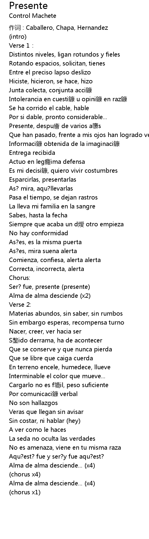 | zuò cí : Caballero, Chapa, Hernandez | |