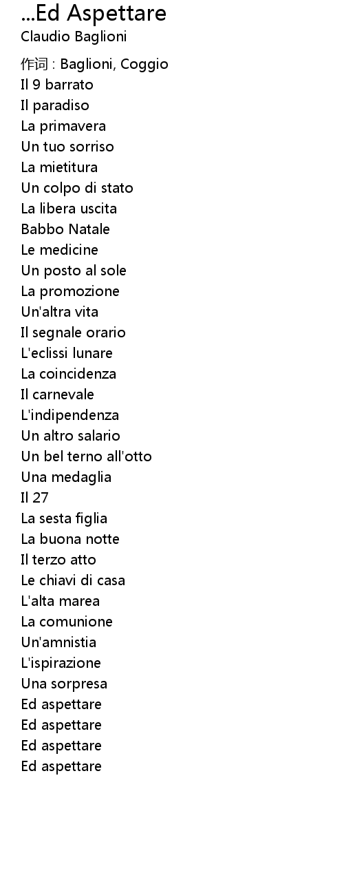 | 歌曲 | ...Ed Aspettare |