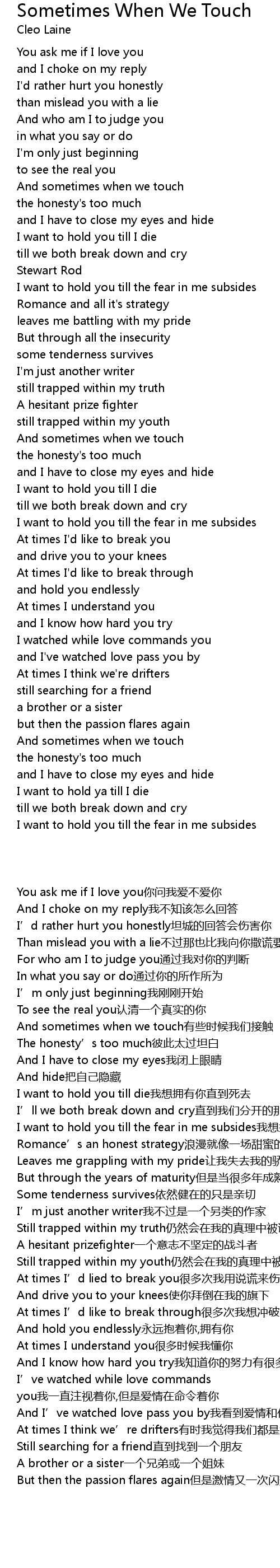 | 歌曲 | Sometimes When We Touch |