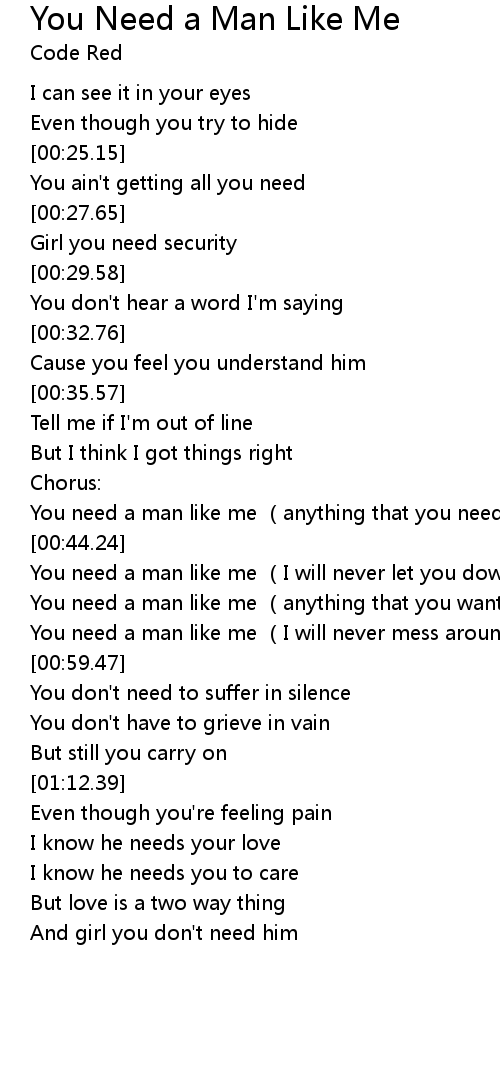 | [00:40.56] | You need a man like me (anything that you need) |