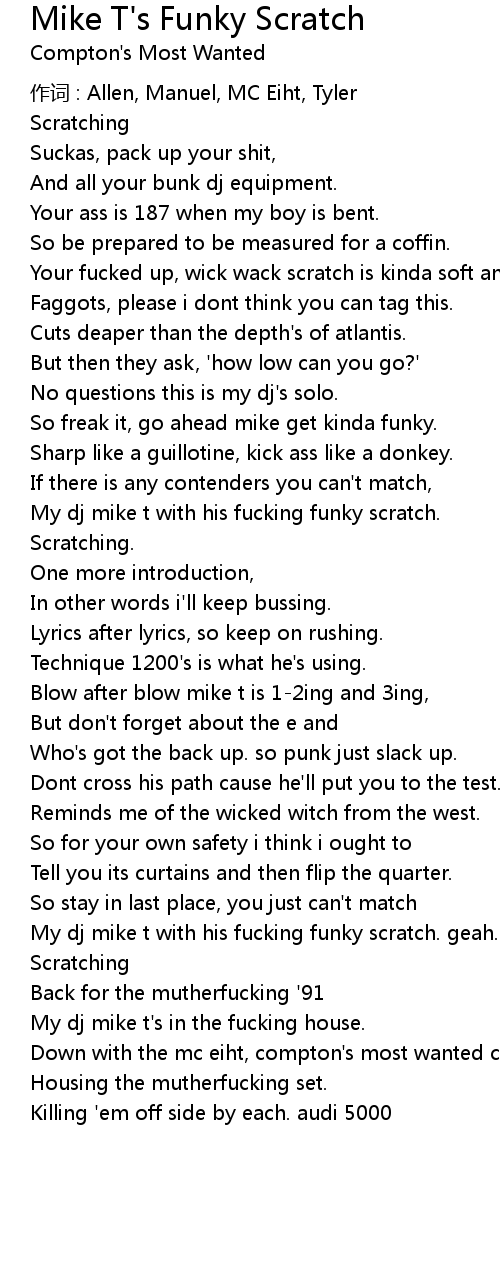 | 歌曲 | Mike T's Funky Scratch |