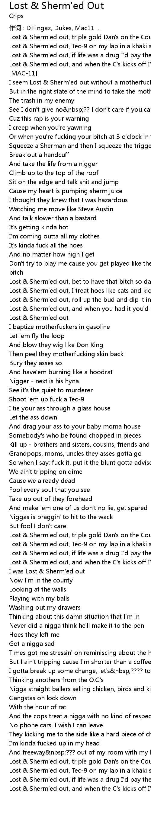 | I seem Lost Sherm' ed out without a motherfucking doubt | |