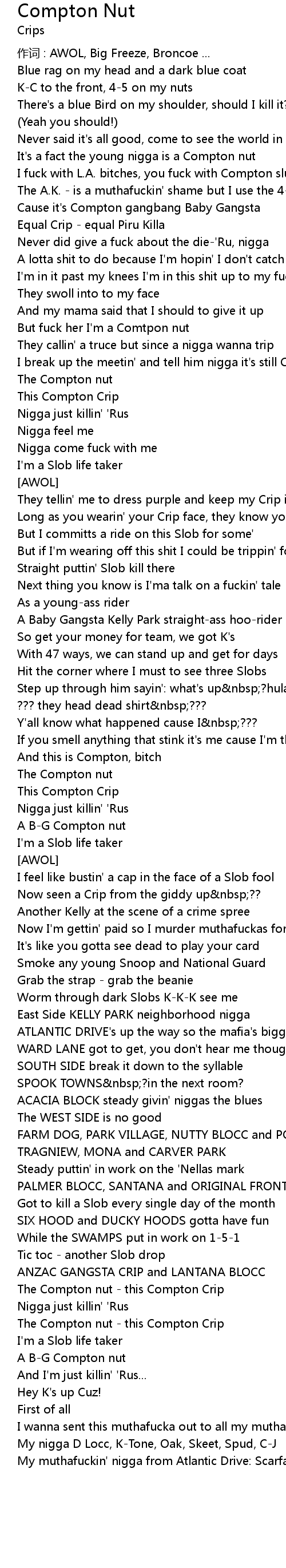 | I fuck with L. A. bitches, you fuck with Compton sluts | |