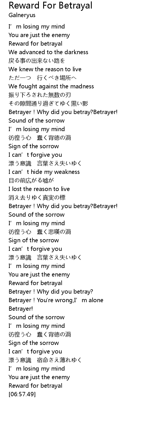 | [00:51.55] | Reward for betrayal |