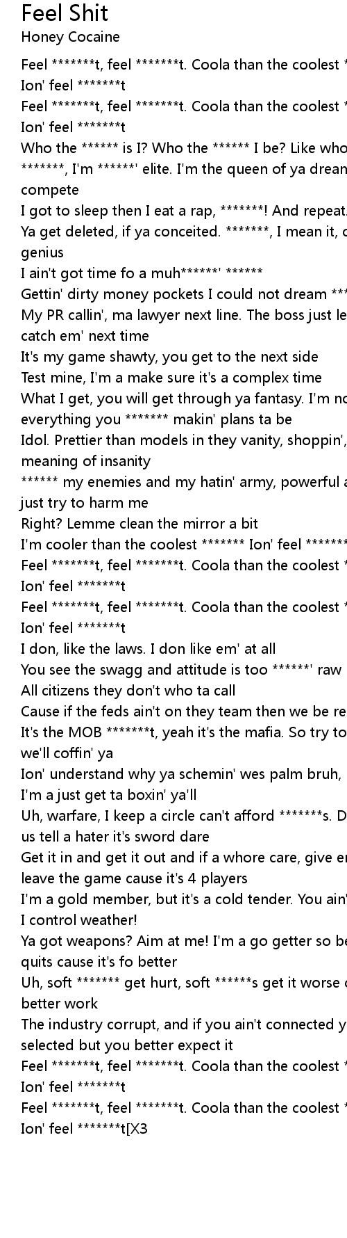 Feel *******t, feel *******t. Coola than the coolest ******* |