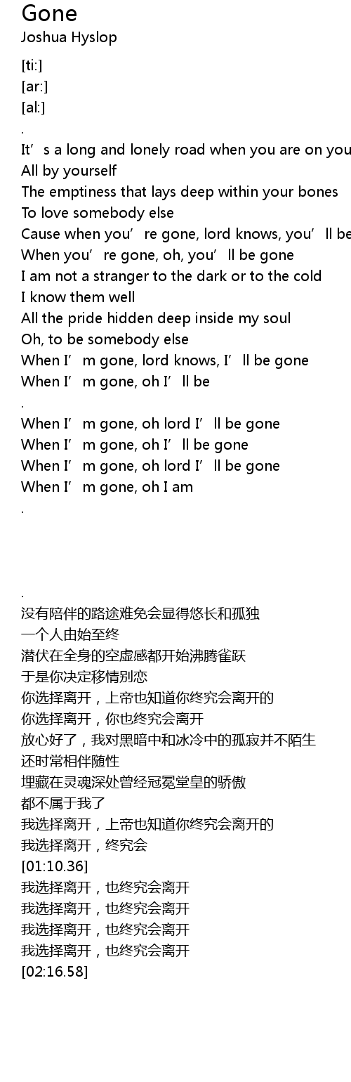 | [01:46.23] | When I’m gone, oh lord I’ll be gone |