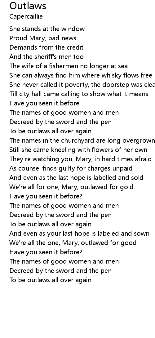 We're all the one, Mary, outlawed for good |