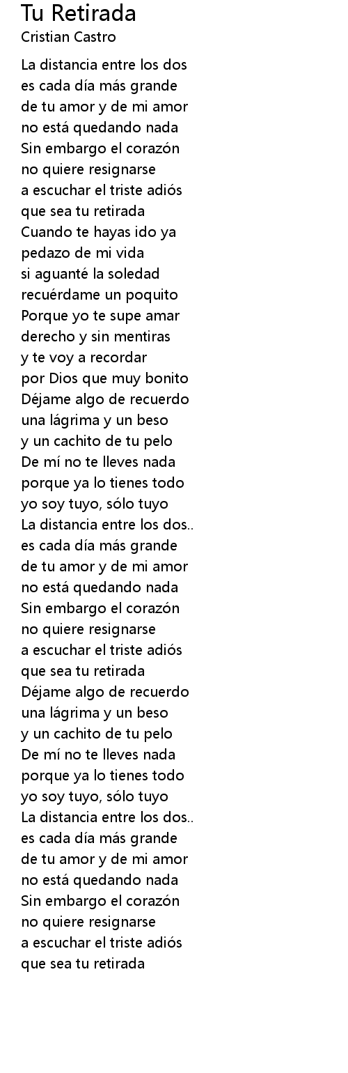 | 歌曲 | Tu Retirada |