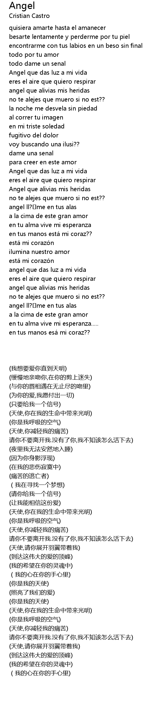 | [02:04.72] | Angel que das luz a mi vida |