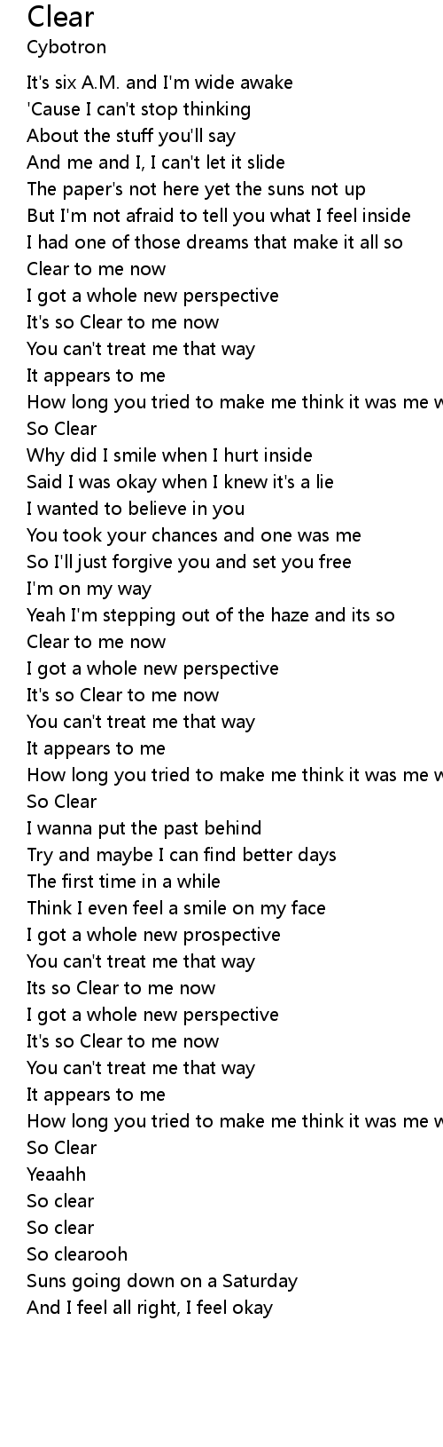 It's so Clear to me now |