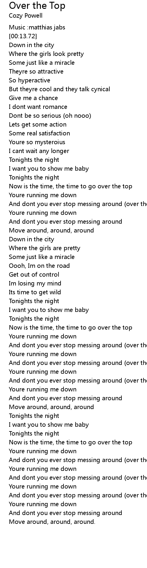 Over the Top 歌词