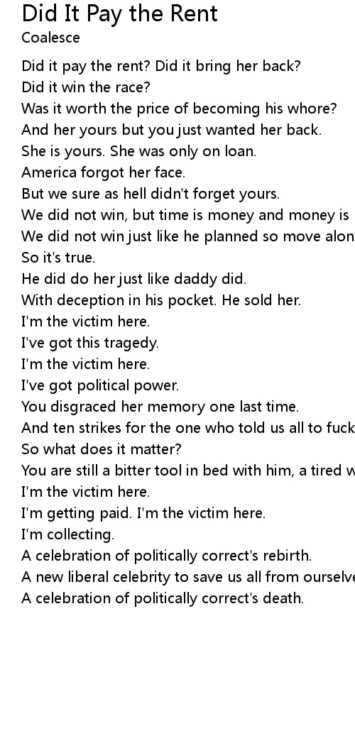 Did it pay the rent? Did it bring her back? |