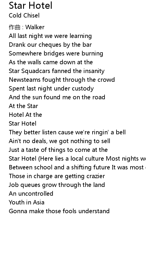 | Star Hotel Here lies a local culture Most nights were good, some were bad Between school and a shifting future It was most of all we had | |