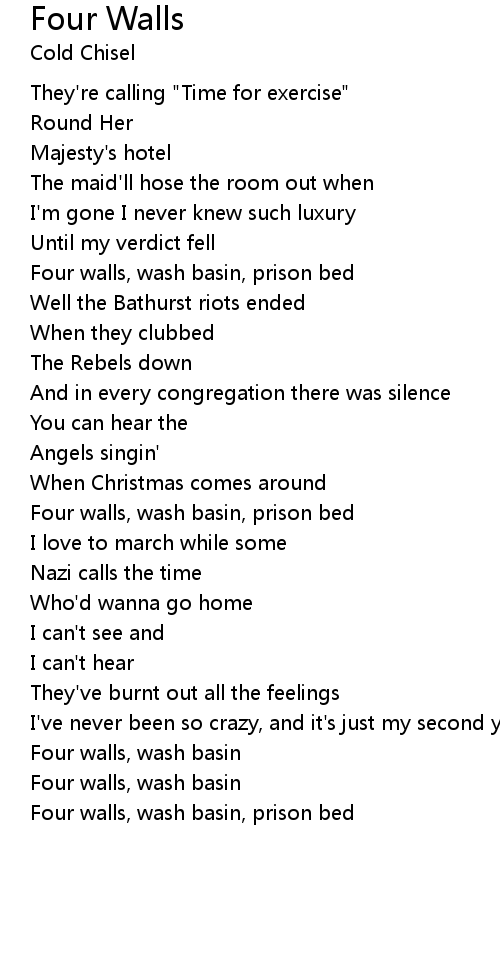 Four walls, wash basin, prison bed |