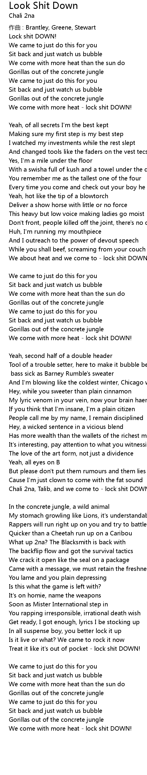 | Every time you come and check out your boy he - lock shit DOWN! | |