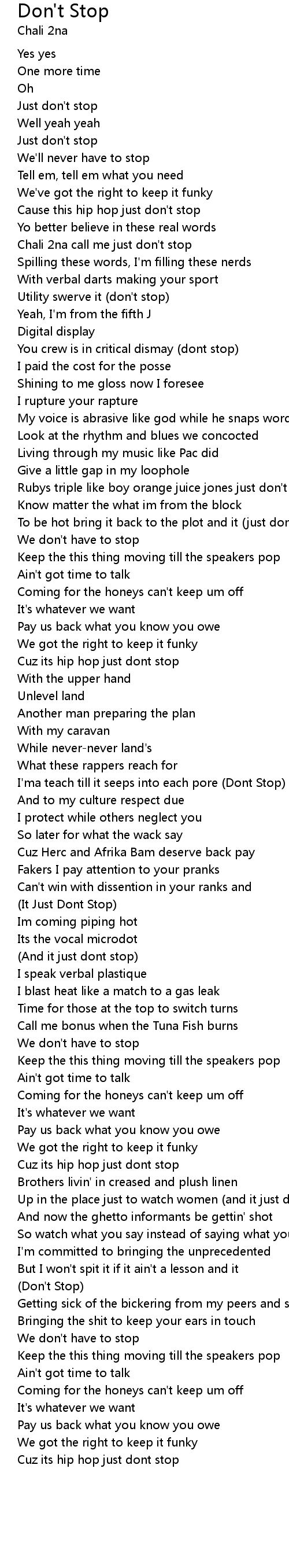 Chali 2na call me just don't stop |