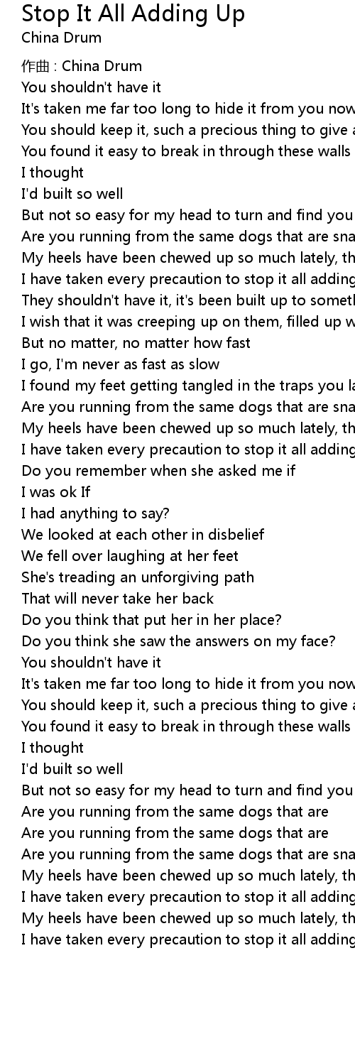 | 歌曲 | Stop It All Adding Up |