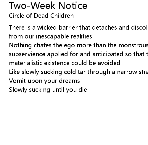 | There is a wicked barrier that detaches and discolors our unattainable dreams from our inescapable realities | |